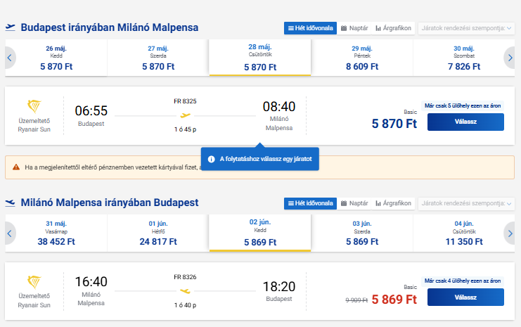 Repülőjegy: Ryanair, oda-vissza 11.739 Ft Foglalás ITT