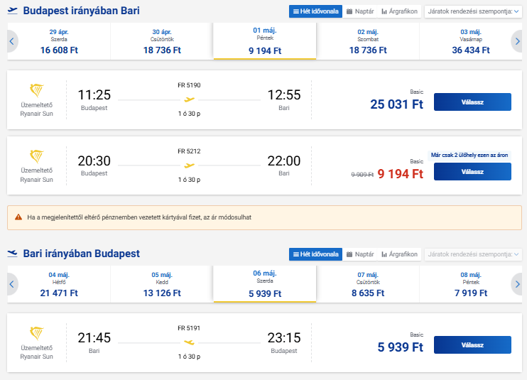 Repülőjegy: Ryanair, oda-vissza 15.133 Ft Foglalás ITT