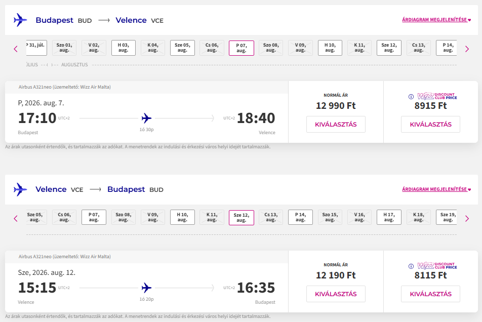 Repülőjegy: Wizz Air, oda-vissza 17.030 Ft (Wizz tagságival, anélkül 25.180 Ft) Foglalás ITT