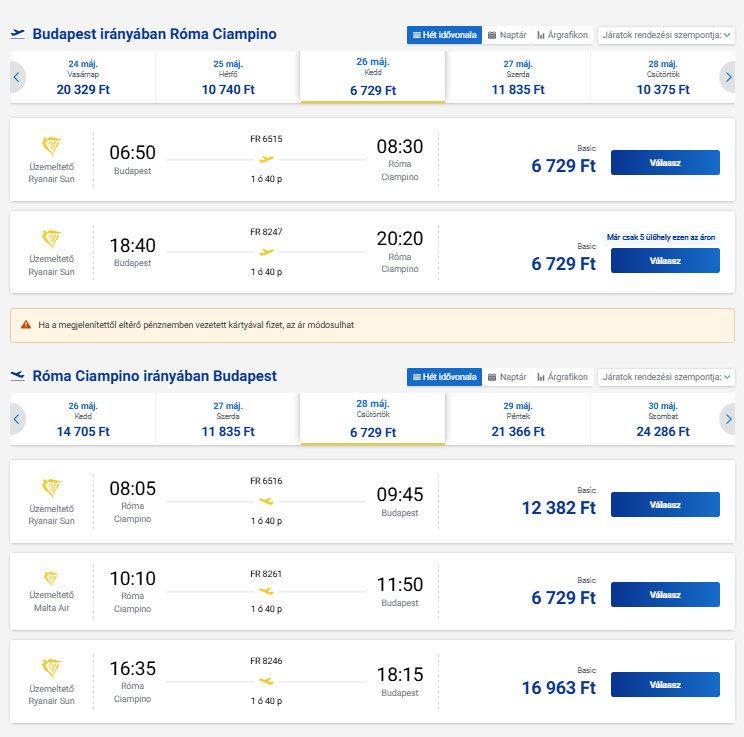 Repülőjegy: Ryanair, Budapest-Róma, oda-vissza 13.458 Ft-tól Foglalás ITT