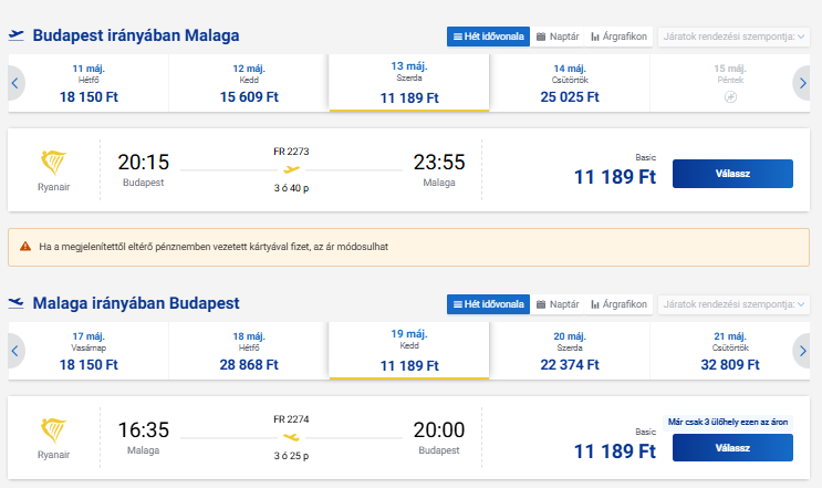 Repülőjegy: Ryanair, oda-vissza 22.378 Ft Foglalás ITT