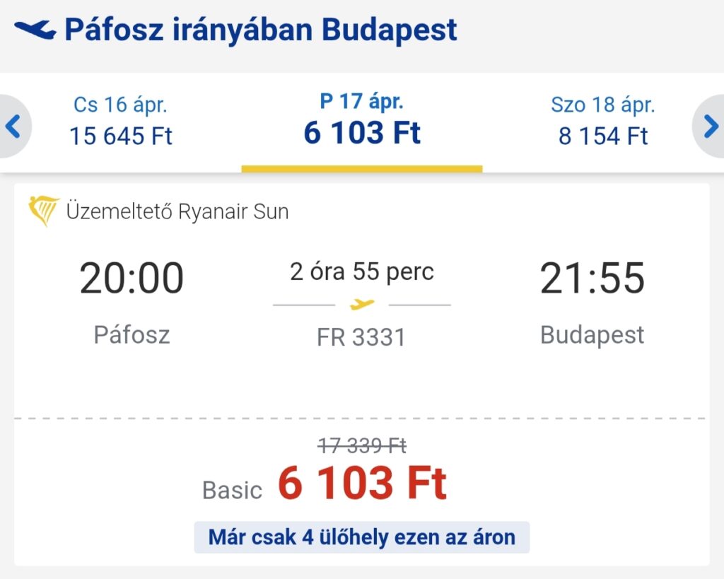 Jó áron foglalhattok repülőjegyet Budapestről Páfoszra.