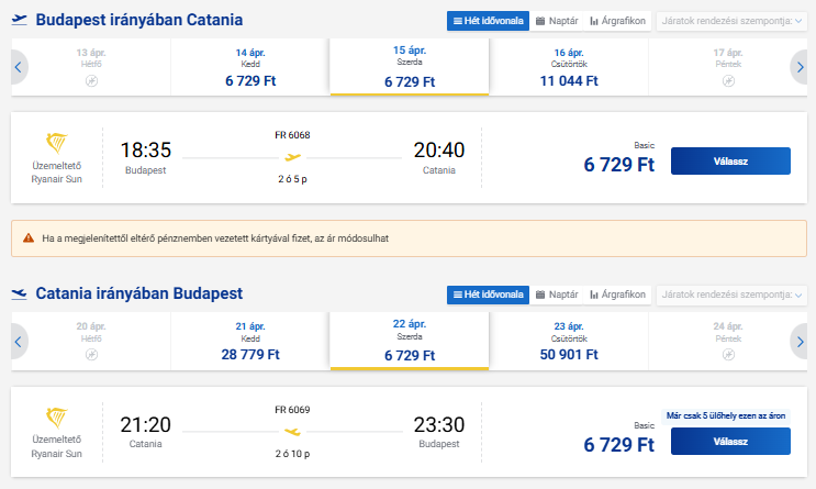 Jó áron foglalhattok repülőjegyet Cataniába.