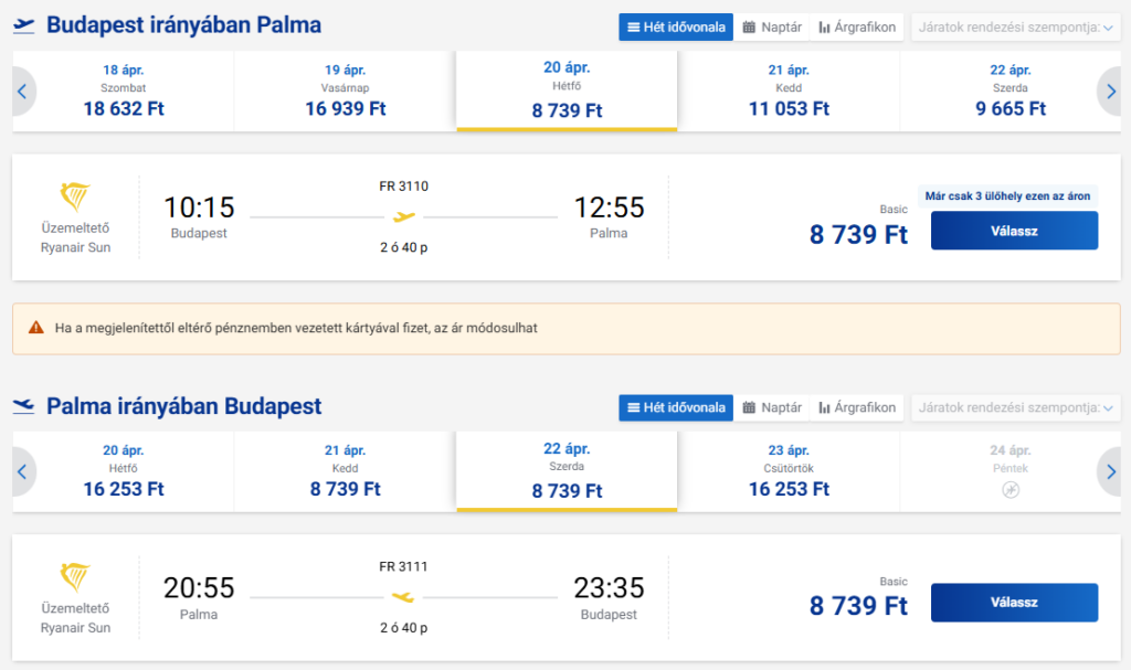 Repülőjegy: Ryanair, oda-vissza 17.478 Ft Foglalás ITT