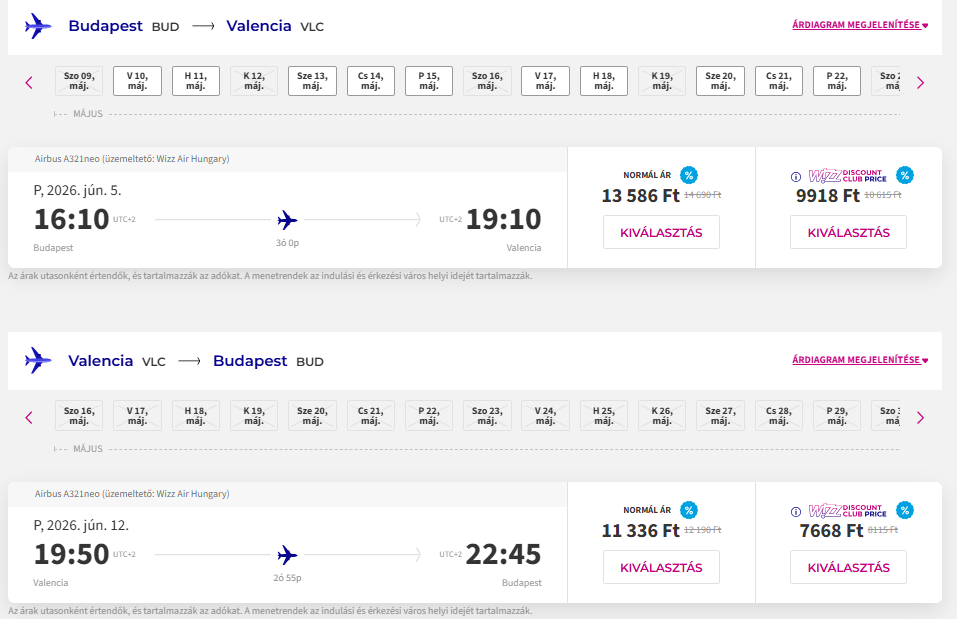 Repülőjegy: Wizz Air, oda-vissza 17.587 Ft(Wizz tagságival, anélkül 24.922 Ft) Foglalás ITT