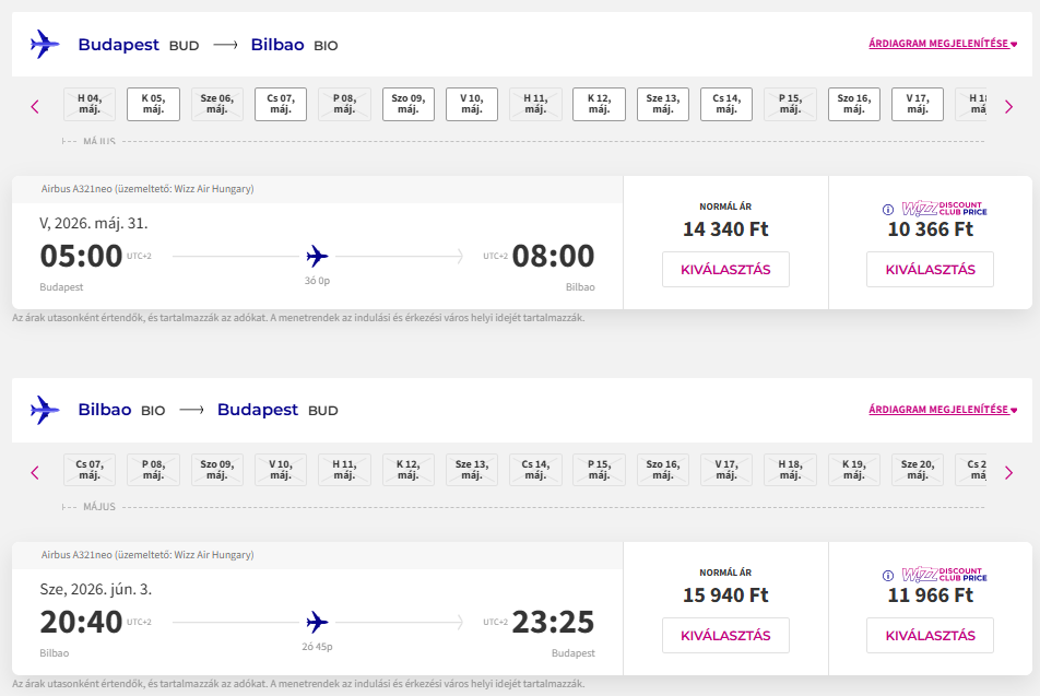 Repülőjegy: Wizz Air, oda-vissza 22.302 Ft(Wizz tagságival, anélkül 30.280 Ft) Foglalás ITT