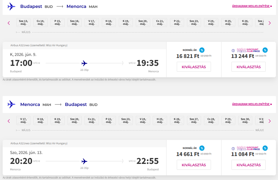 Jó áron foglalhattok repülőjegyet júniusban a Wizz Air új Budapest-Menorca járatára.