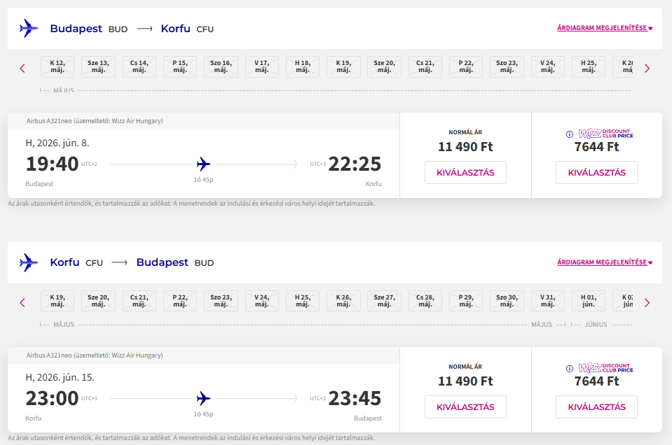 Repülőjegy: Wizz Air, Budapest-Korfu oda-vissza 15.288 Ft(Wizz tagságival, anélkül 22.980 Ft) Foglalás ITT