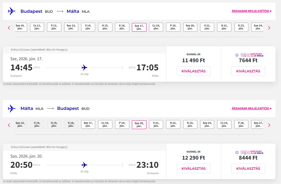 Jó áron foglalhattok repülőjegyet júniusban Budapestről Máltára.