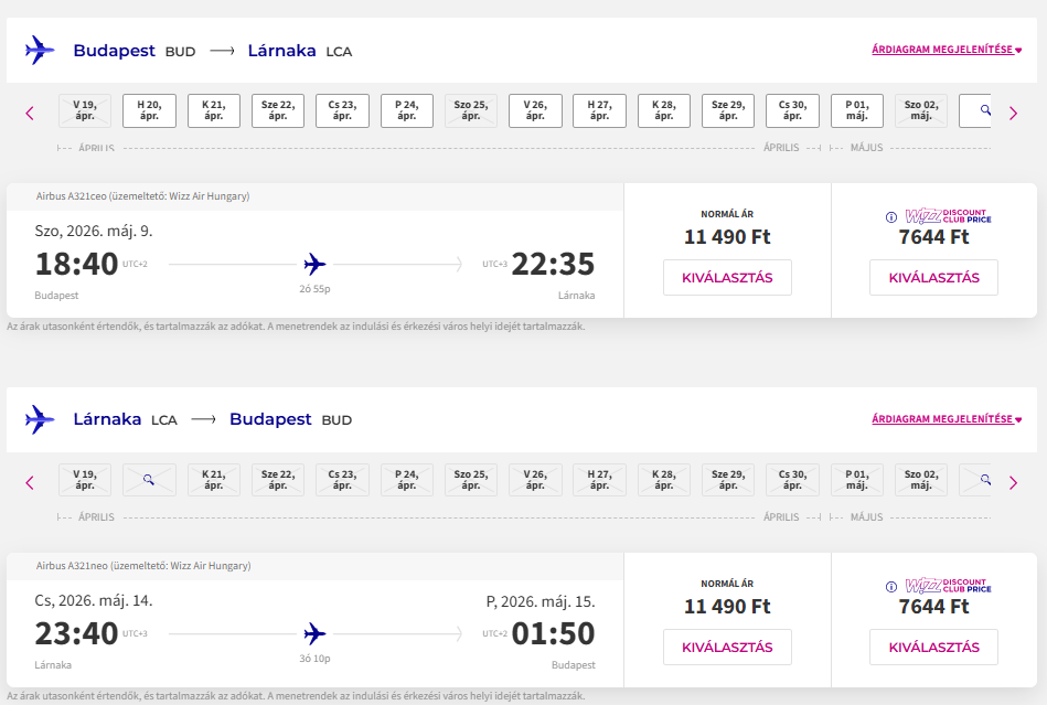 Repülőjegy: oda-vissza 15.288 Ft(Wizz tagságival, anélkül 22.980 Ft) Foglalás ITT