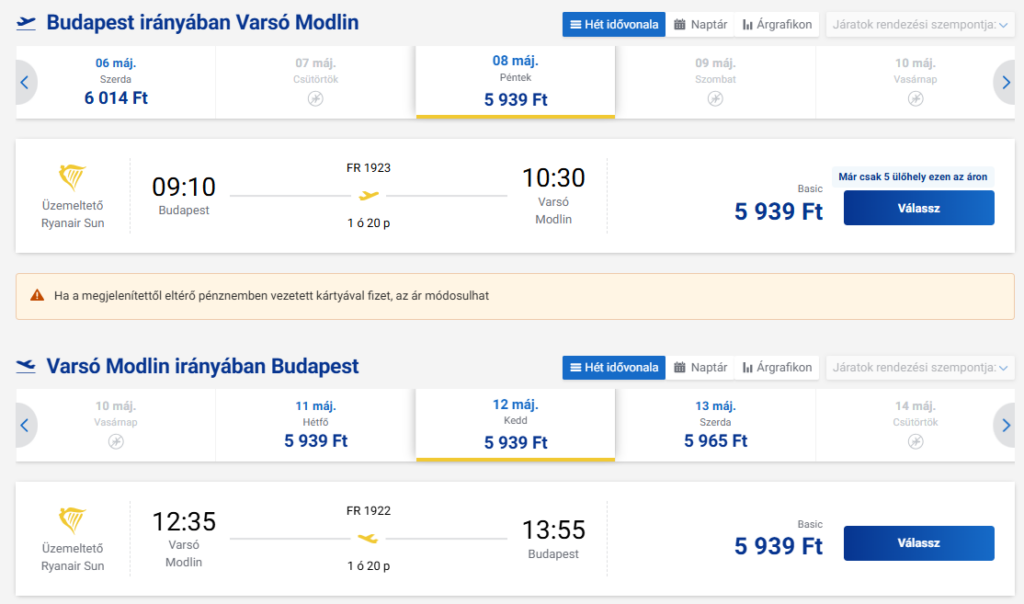 Nagyon jó áron foglalhattok repülőjegyet Budapestről Varsó-Moldin repülőtérre.