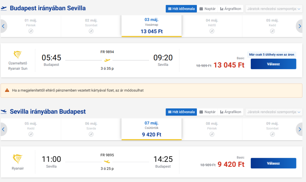 Jó áron foglalhattok retúr repjegyet Budapestről Sevillába.