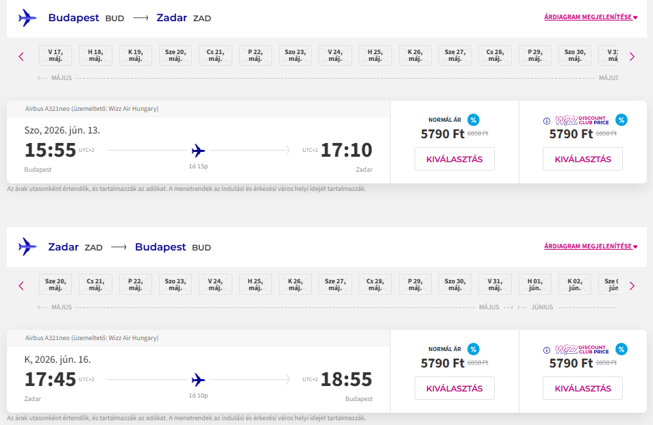 Repülőjegy: Wizz Air, oda-vissza 11.580 Ft Foglalás ITT
