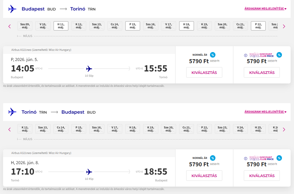 Repülőjegy: Wizz Air, oda-vissza 11.580 Ft Foglalás ITT
