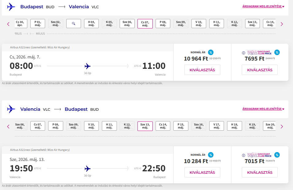 Repülőjegy: Wizz Air, Budapest-Valencia oda-vissza 14.710 Ft(Wizz tagságival, anélkül 21.248 Ft) Foglalás ITT