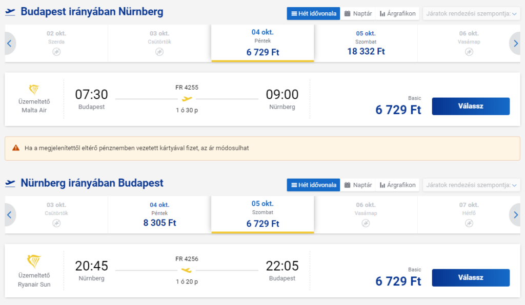 Így a repjegy + 1 éjszaka szállás 2 fő részére összesen 53.646 Ft(26.823 Ft/fő)